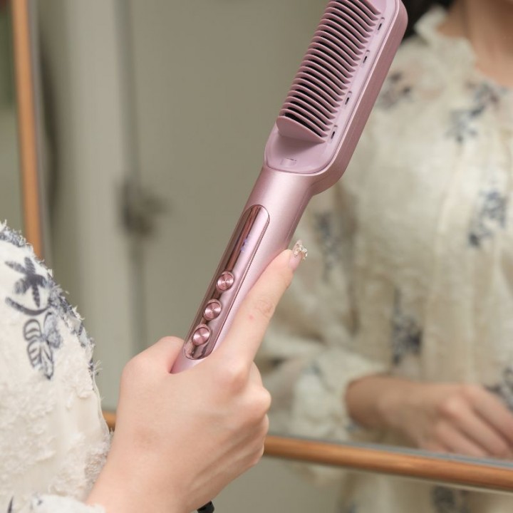 - Gia nhiệt đều khi chải tóc: Máy làm nóng ổn định trên bề mặt răng lược, giúp tóc được định hình dần theo từng lần chải mà không cần kẹp ép mạnh như các thiết bị tạo kiểu truyền thống.