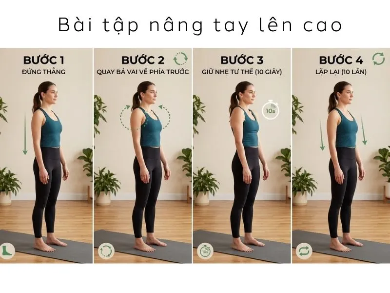 Bài tập nâng tay lên cao giúp vùng vai và phần thân trên được kéo giãn nhẹ nhàng, từ đó hỗ trợ cải thiện độ linh hoạt và giúp tư thế cơ thể trở nên thanh thoát hơn. Khi vùng vai được vận động đều và mở rộng hơn, phần xương quai xanh cũng có thể trông rõ hơn, góp phần tạo cảm giác bờ vai mềm mại và gọn gàng hơn.